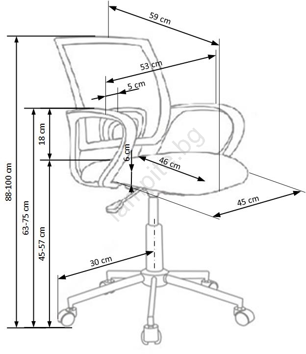 • Благодарение на възможността за регулиране на височината столът лесно се адаптира към вашата фигура и към стила на сядане.
