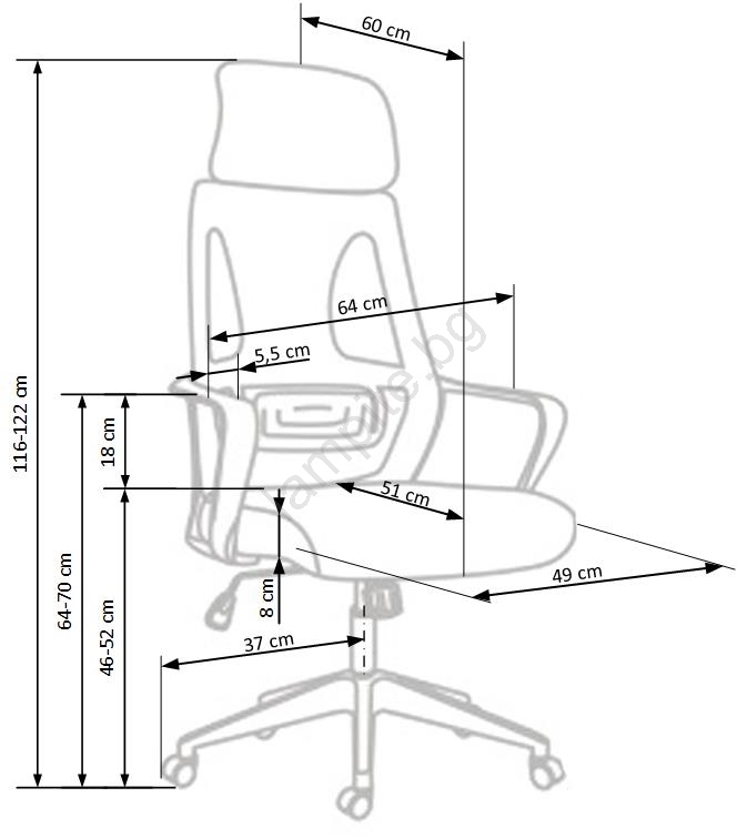 • Благодарение на възможността за регулиране на височината на седалката и наклона на облегалката, столът лесно се адаптира към вашето тяло и начин на сядане.