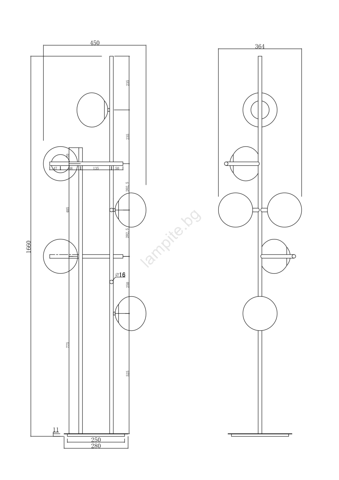 Ondaluce - Подова лампа JEWEL 6xE14/10W/230V опушено черно