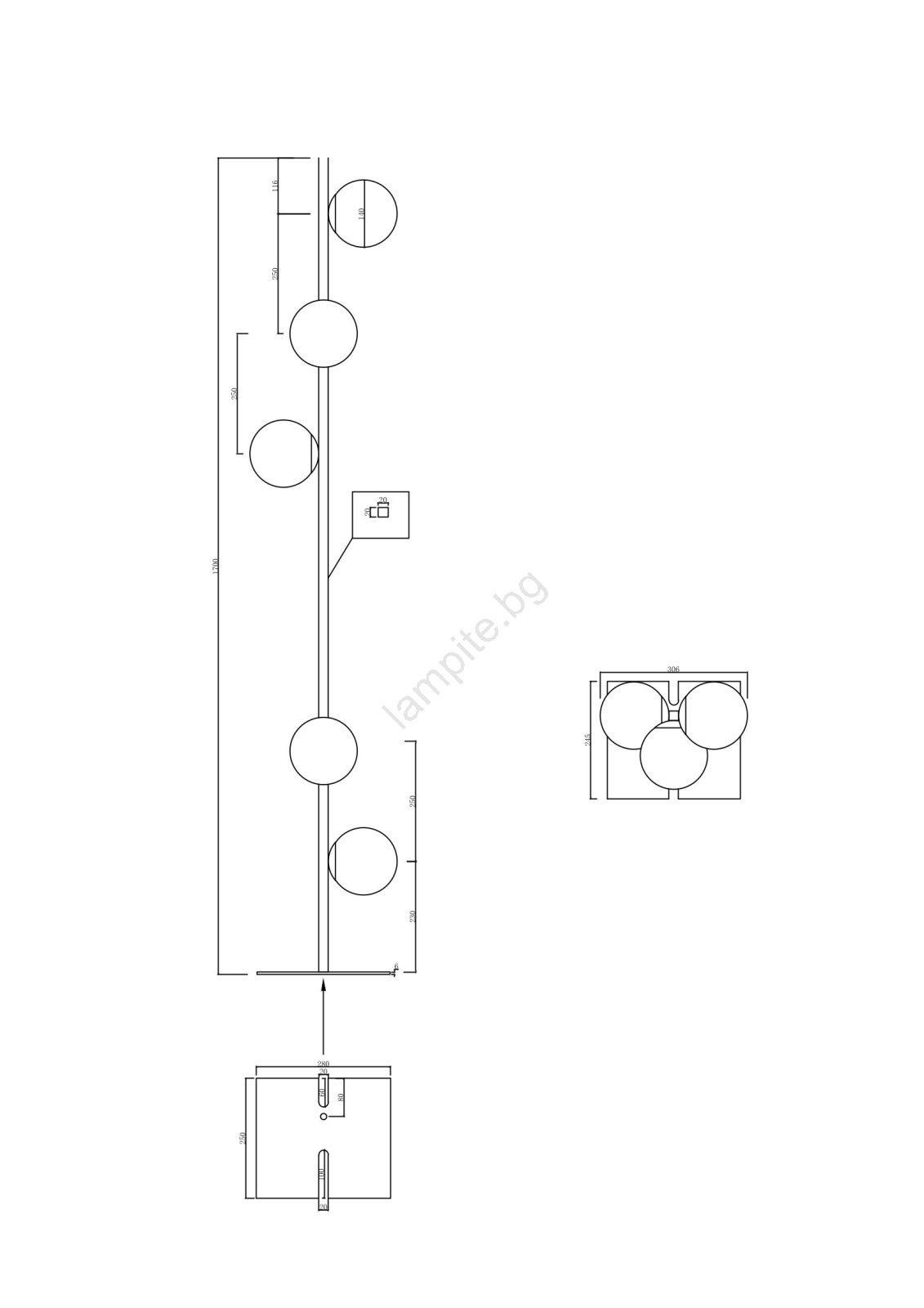 • Ondaluce - Подова лампа MONILE 5xE14/10W/230V димно-черна