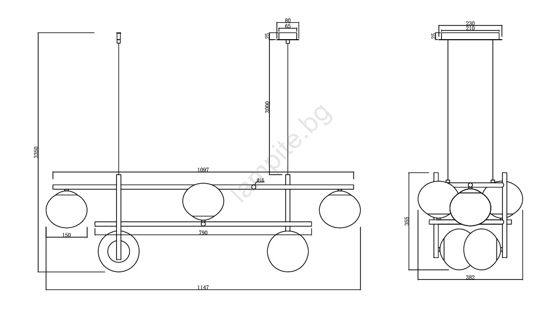 • Ondaluce - Полилей на кабел JEWEL 6xE14/10W/230V димчато черен