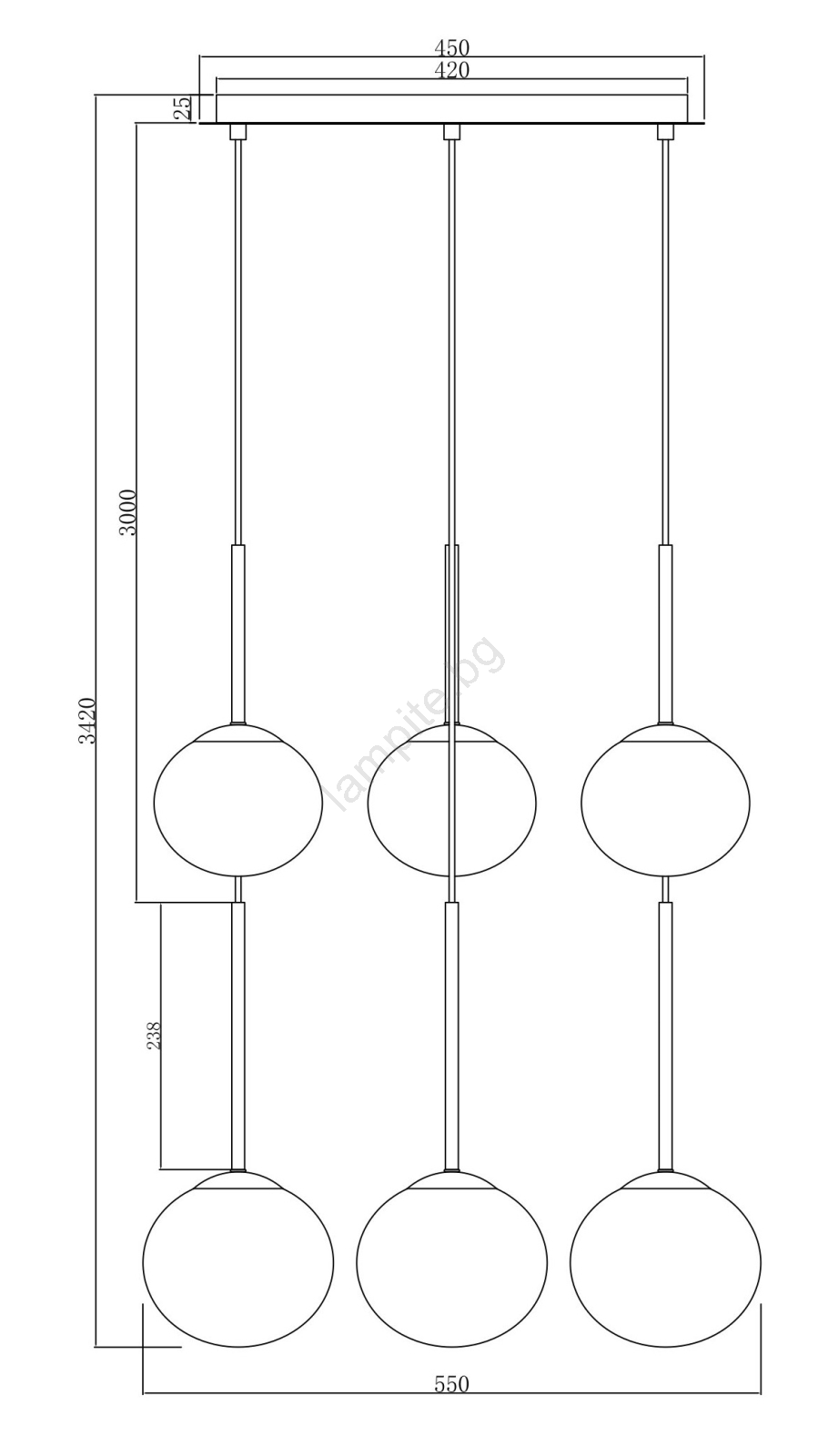 • Ondaluce - Полилей на кабел JEWEL 6xE14/10W/230V Ø 55 см димно черен