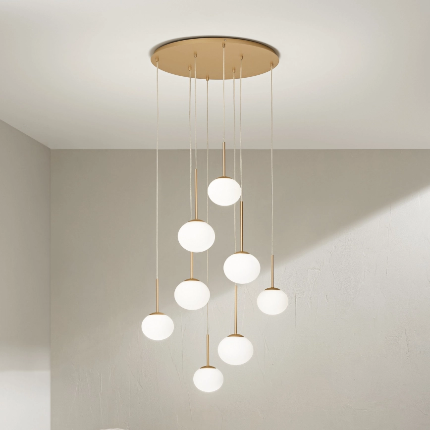 • Ondaluce - Полилей на кабел JEWEL 8xE14/10W/230V Ø 70 см златист/бял