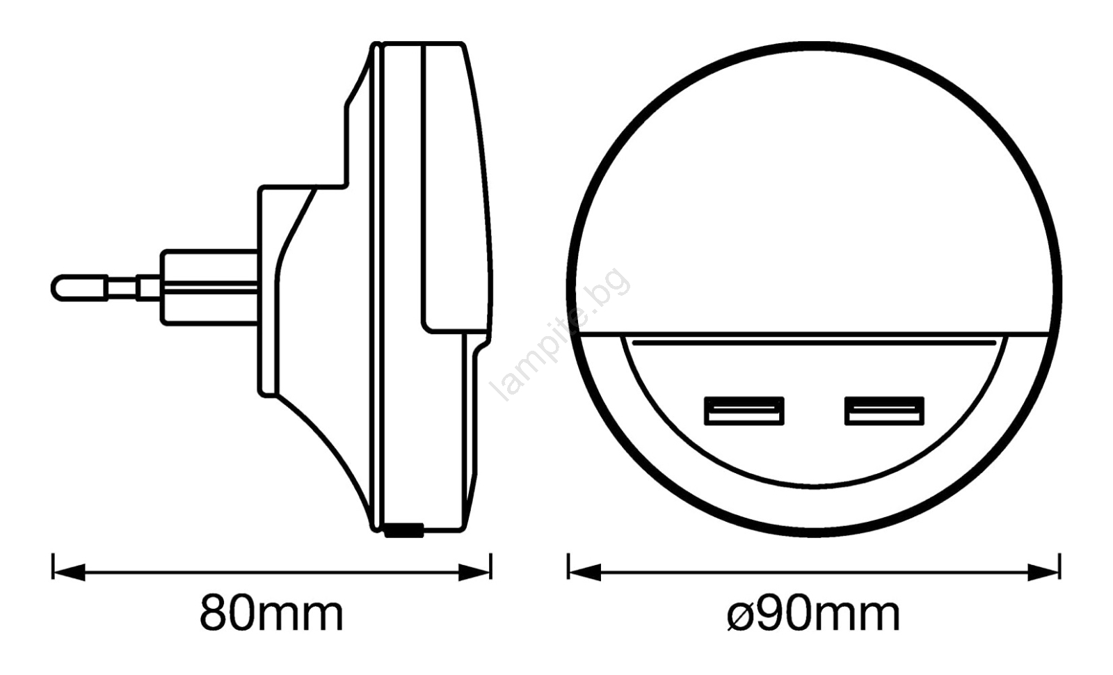 Osram - LED нощна лампа за контакт със сензор LUNETTA 2xUSB LED/13W/230V