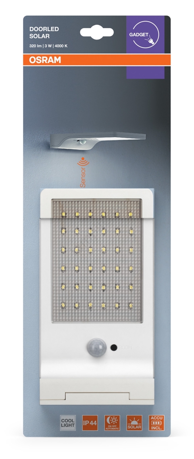 • Osram - соларно LED стенно осветително тяло със сензор DOORLED LED/3W/3,3V 2000 mAh IP44 бяло