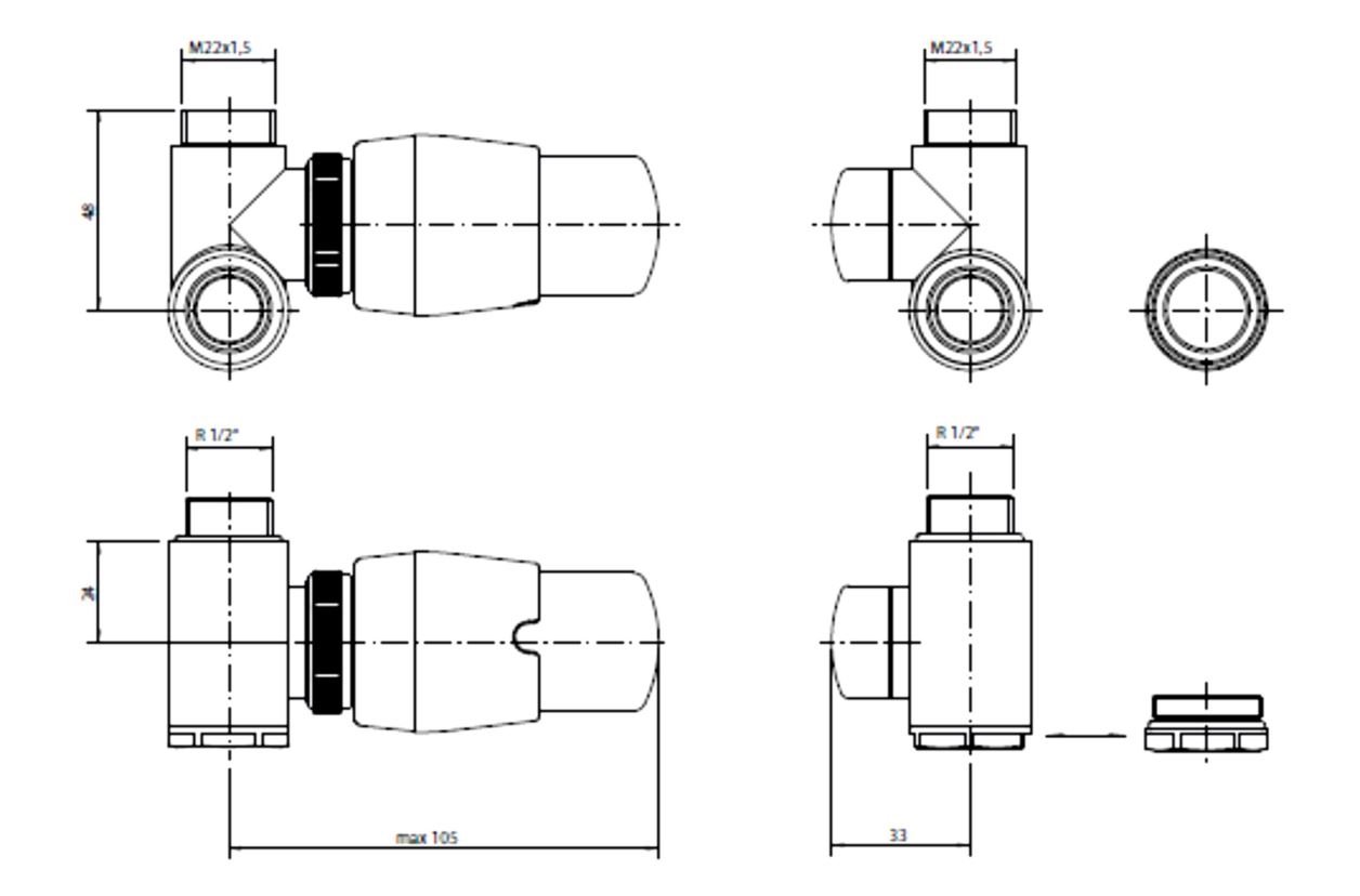 P.M.H. INTER-LW - Вентил с термостатна глава INTER ляв/бял