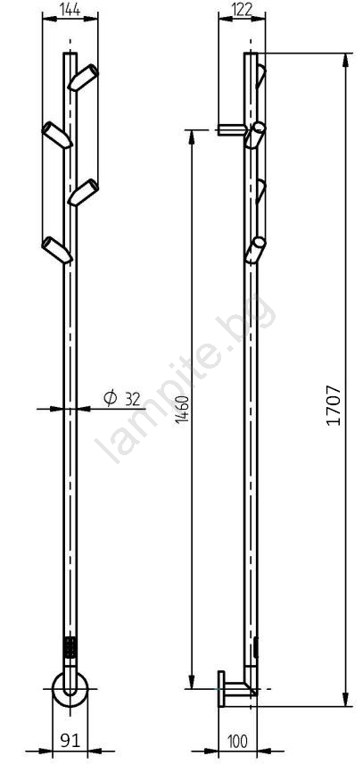 P.M.H. LS1B - Електрически сушилник за кърпи LISA 24W/230V 170 cm IP44 черен
