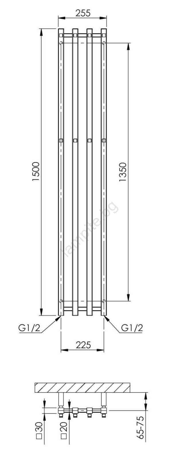 • Радиаторът е допълнен с квадратни куки в два реда за лесно окачване на кърпи.
