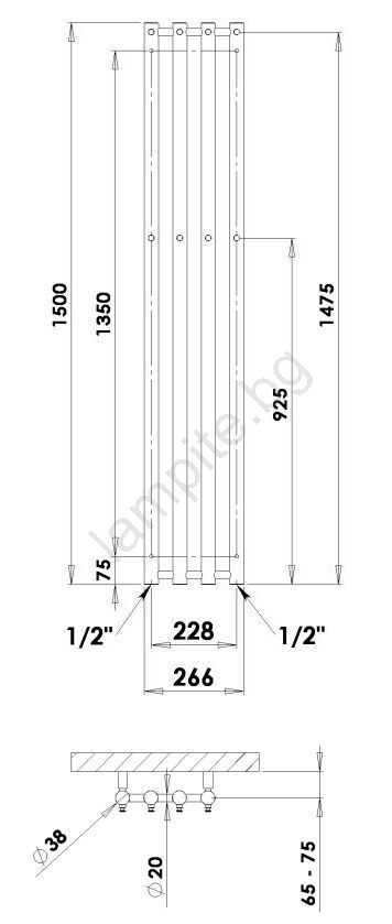 P.M.H. R2C - Лира за баня ROSENDAL 350 Вт 150 см лъскав хром