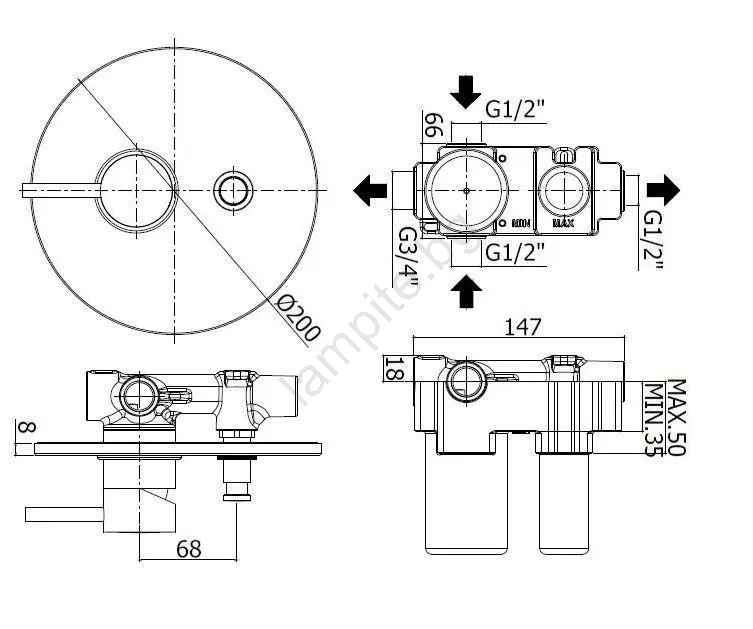 Paffoni, Баня, Вградени кранове, Кранове за баня, Кранове за душ, Кранчета, Марки, Скрити смесители за душ