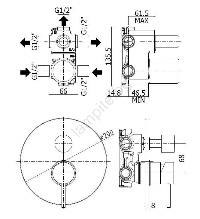 • Превключвателят позволява удобно избиране между няколко душ изхода.