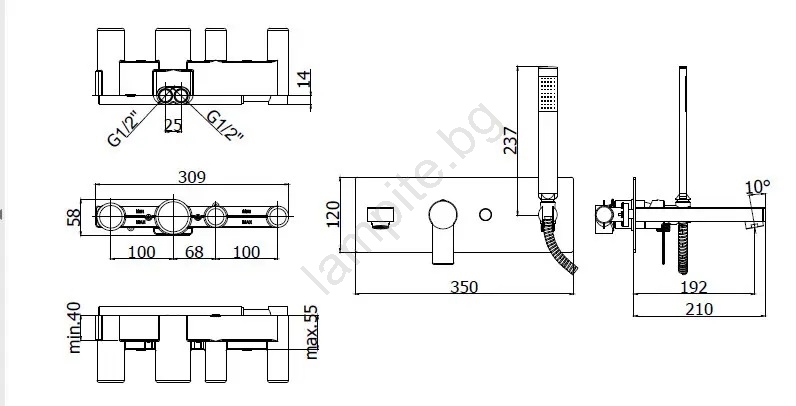 • В комплекта е включен смесителят заедно с комплект за душ.