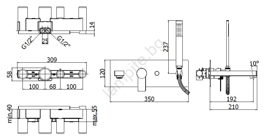 • Включва душ комплект с ръчен душ и гъвкав маркуч.