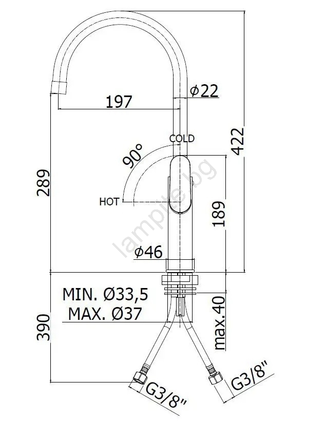 • Едноръкохватков стоящ смесител за кухненска мивка.