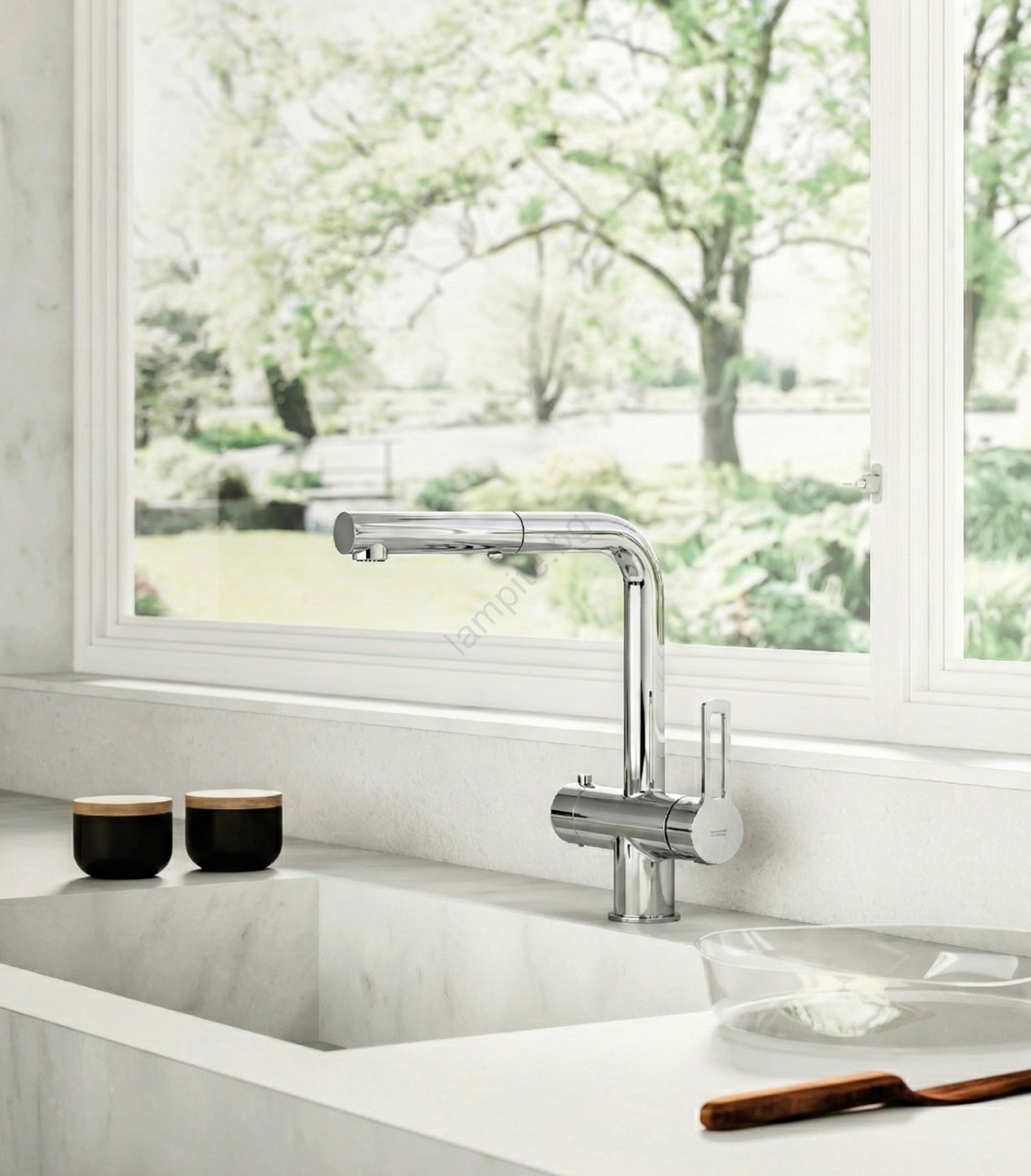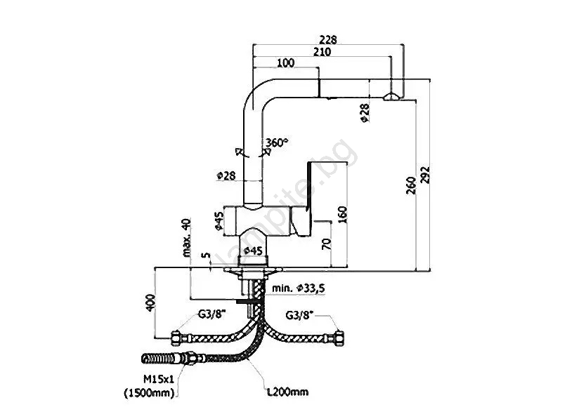 • Кухненски едноръкохватков стоящ смесител за монтаж върху мивка.