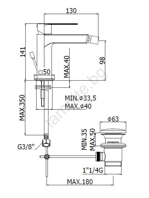• Подходящ за монтаж върху биде с един отвор.
