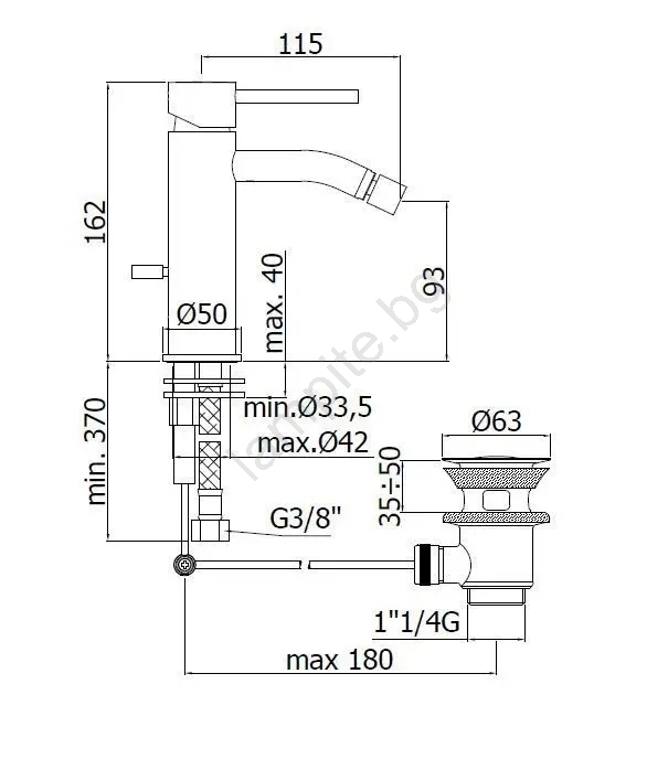 • Стоящ едноръкохватков смесител за биде в модерен, изчистен дизайн.