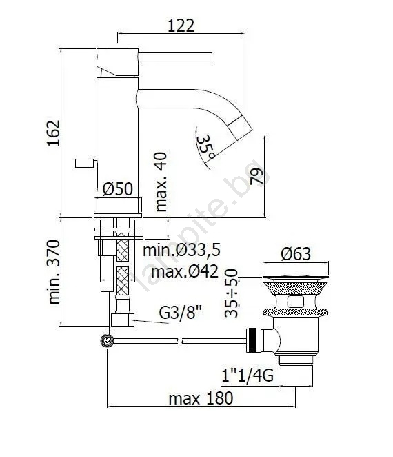 • Включен е изпускател, така че смесителят е готов за монтаж.