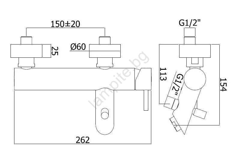 • Междуосово разстояние за стенен монтаж: 150 mm.