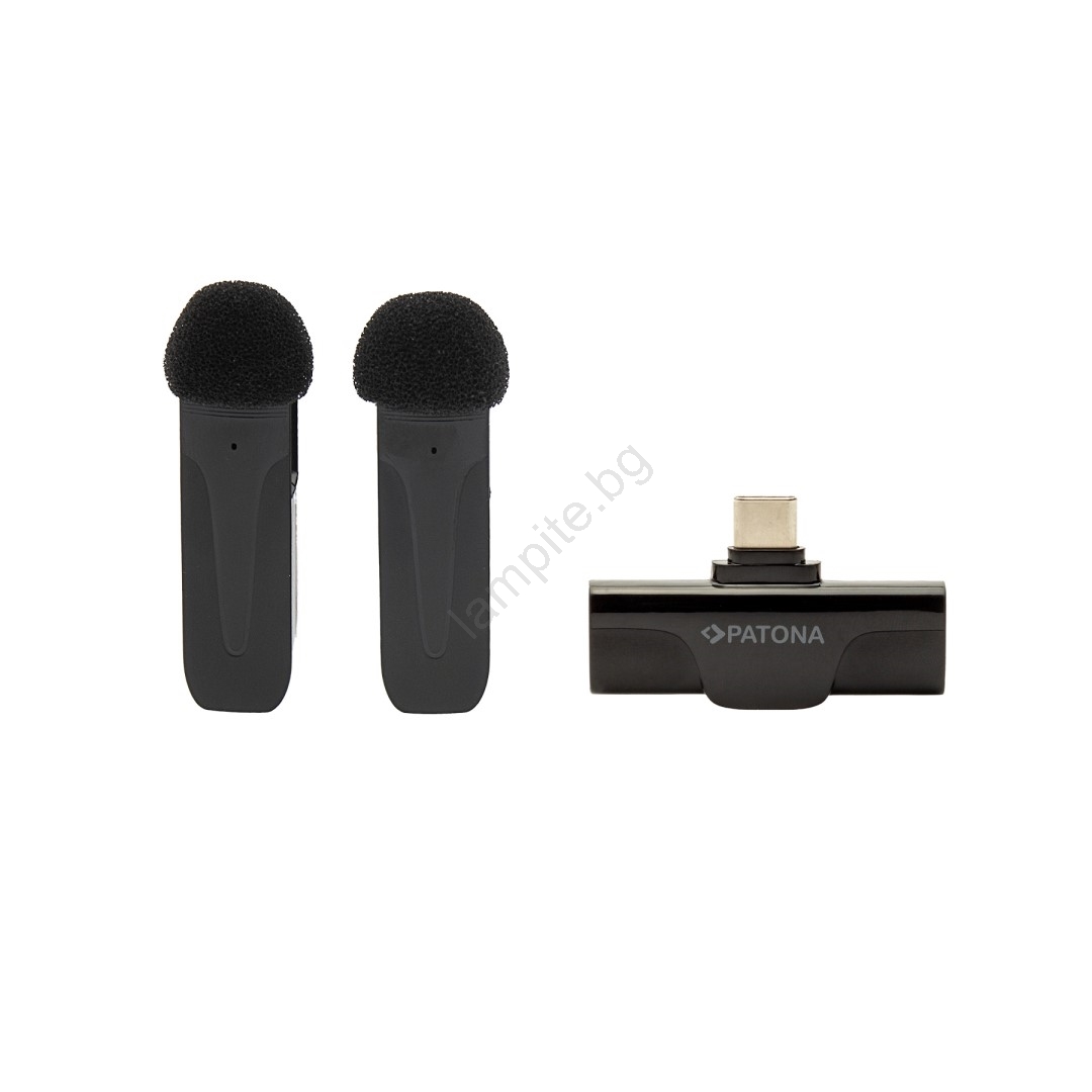 PATONA - К-кт 2x Безжичен микрофон с щипка за смартфони USB-C 5V 50 mAh