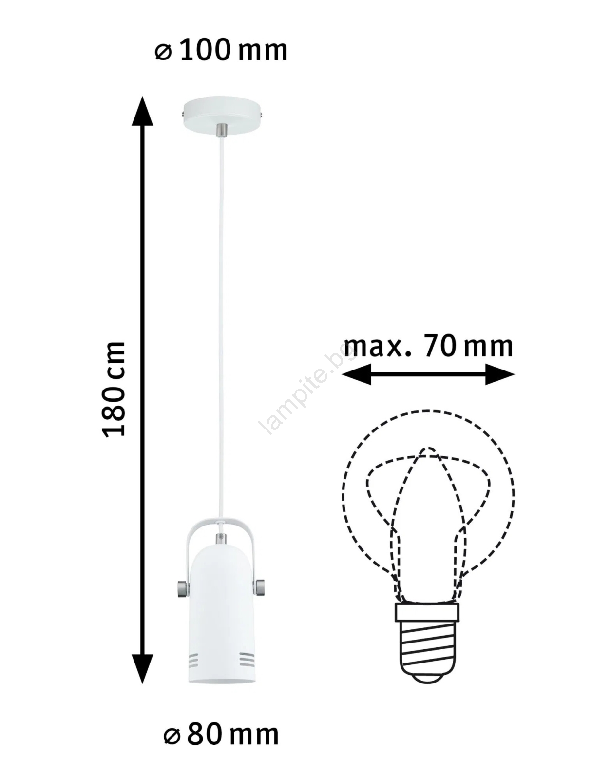 • Paulmann 79767 - LED 1xE27/8W Висящ полилей на кабел LAVEA 230V бял