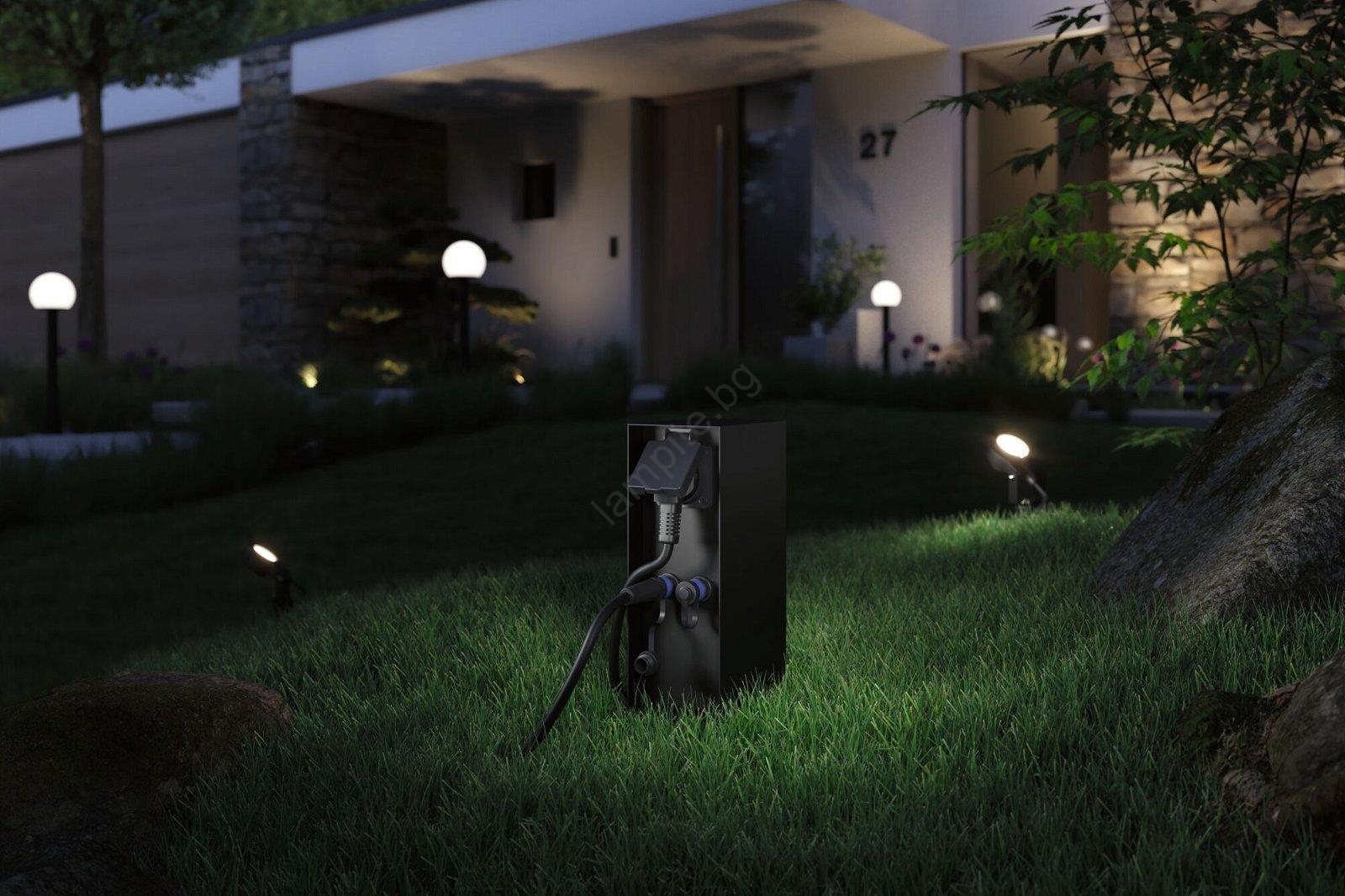 • Благодарение на защита срещу пръскаща вода IP44 и защитени контактни гнезда, е идеална за захранване на градинско осветление.