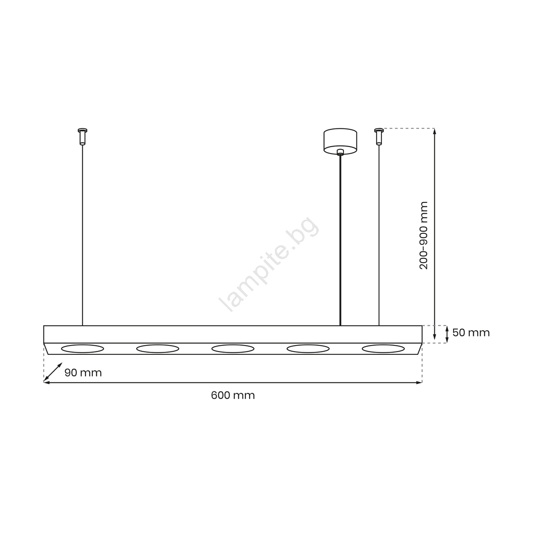 Пендел ALEXANDER 5xGX53/12W/230V черен