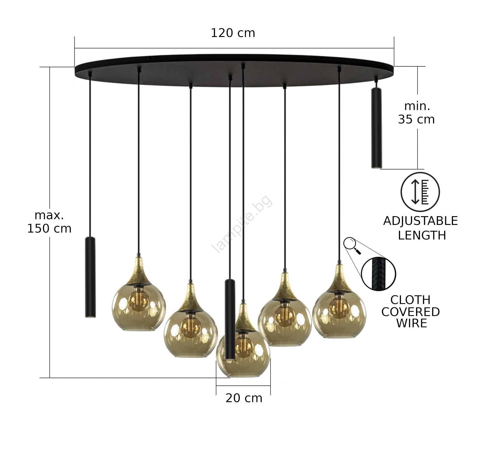 Полилей на кабел CALYPSO 3xGU10/60W/230V + 5xE27/60W черно/златисто