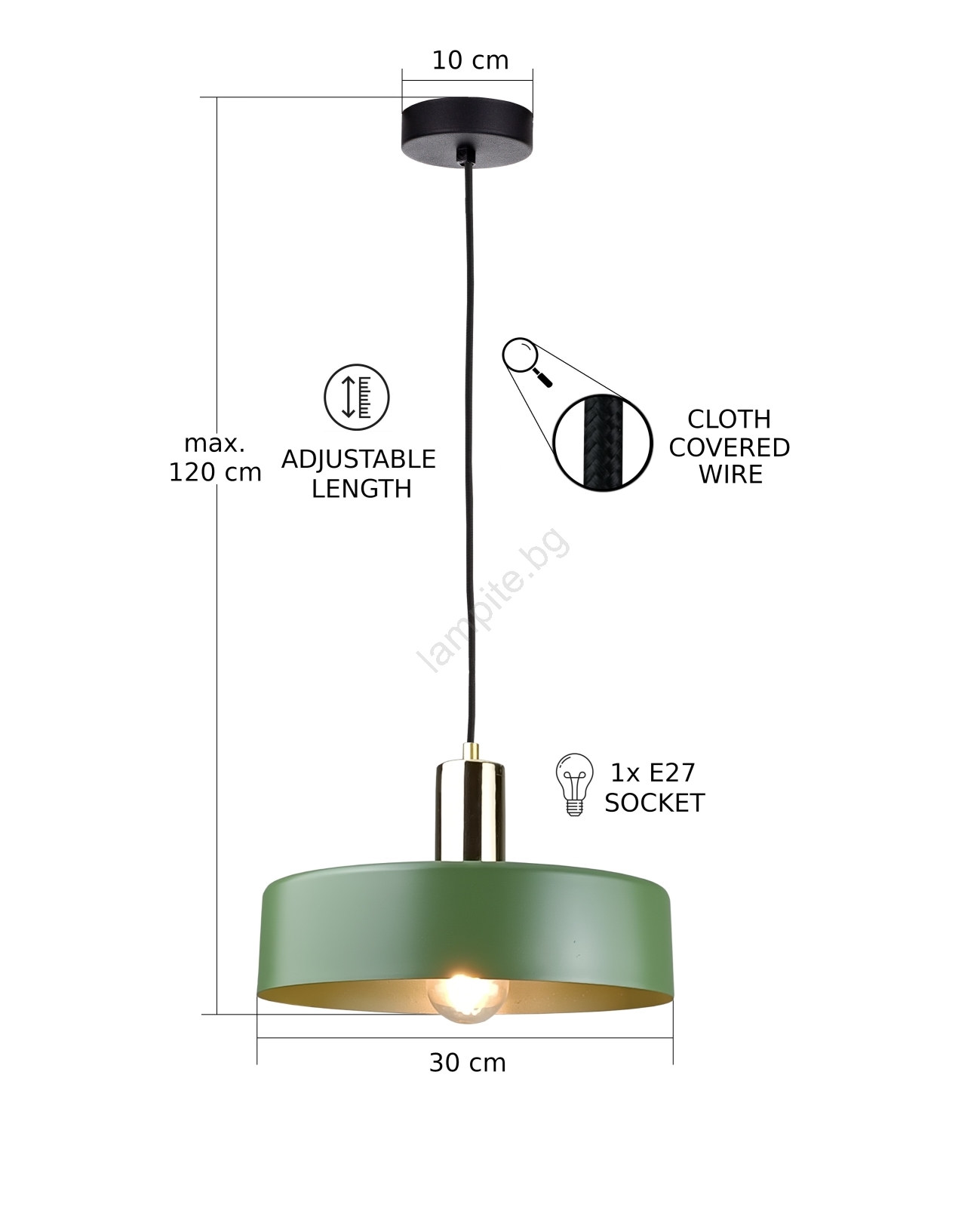 • Пендел HAKI 1xE27/60W/230V зелен/черен