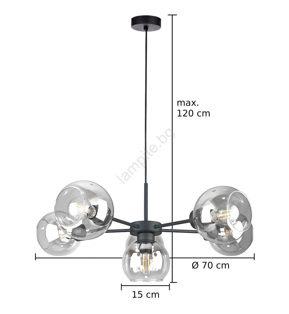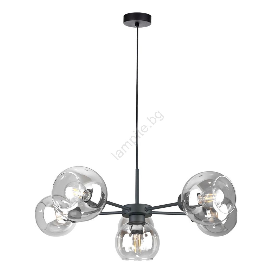 Пендел KALIOPE 6xE27/60W/230V черен/прозрачен се отличава с приятен и функционален дизайн.  Подходяща е крушка с цокъл E27. Тук можете да закупите и други крушки на изгодни цени. Ще имате интересно допълнение към дома си.