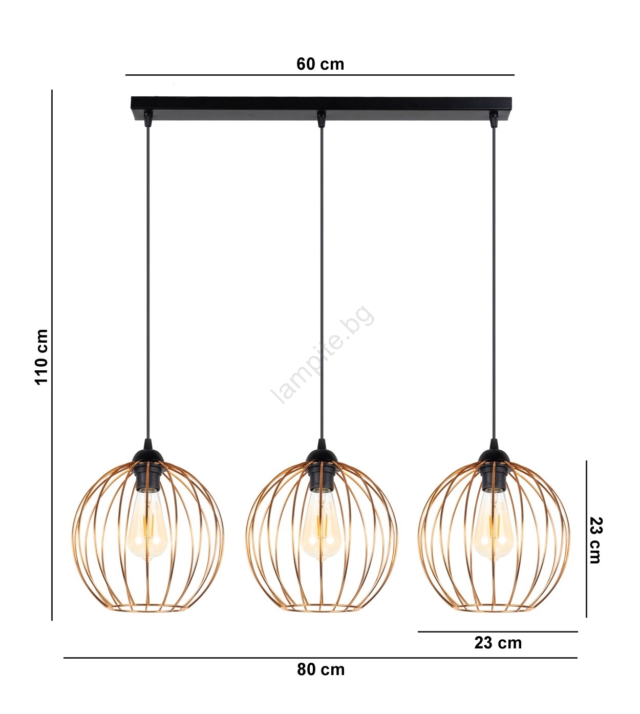 Пендел MATT 3xE27/60W/230V черен/меден се отличава с приятен и функционален дизайн.  Подходяща е крушка с цокъл E27. Тук можете да закупите и други крушки на изгодни цени. Ще имате интересно допълнение към дома си.
