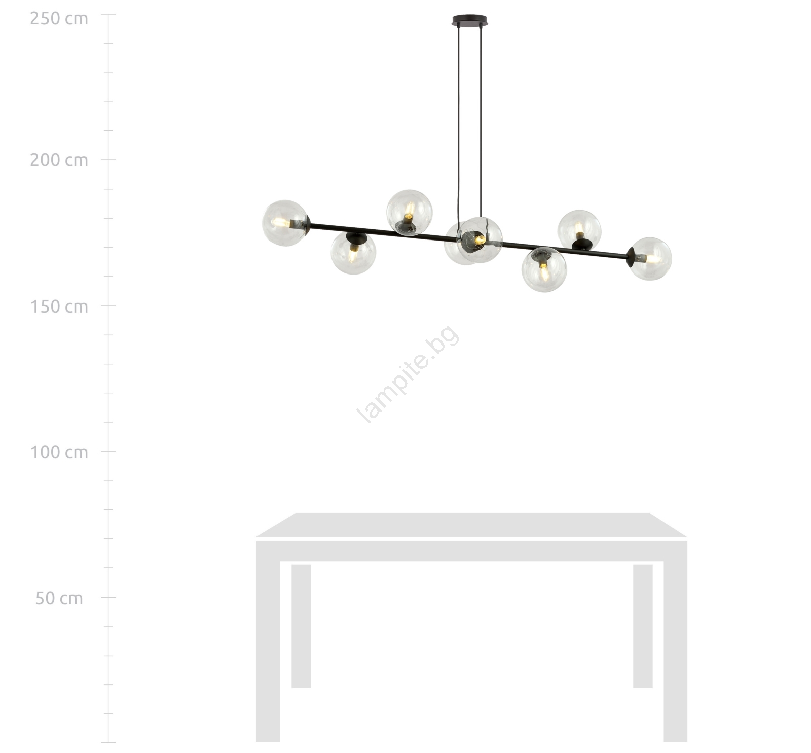 Пендел ROSSI 8xE14/10W/230V черен/прозрачен се отличава с приятен и функционален дизайн.  Подходяща е крушка с цокъл E14. Тук можете да закупите и други крушки на изгодни цени. Ще имате интересно допълнение към дома си.