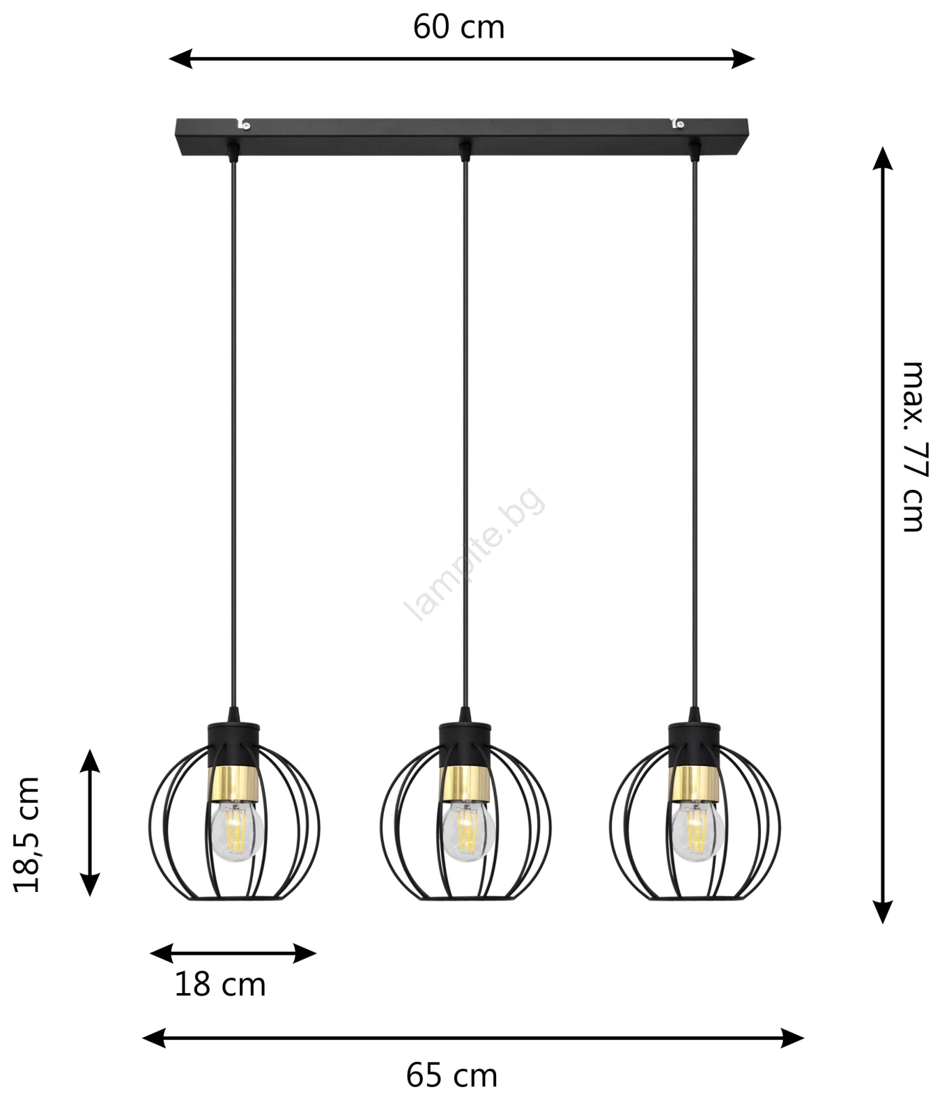 Пендел STARLIGHT 3xE27/15W/230V черен/златист се отличава с приятен и функционален дизайн.  Подходяща е крушка с цокъл E27. Тук можете да закупите и други крушки на изгодни цени. Ще имате интересно допълнение към дома си.