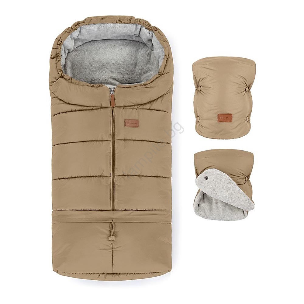 PETITE&MARS - Комплект детски чувал 3в1 JIBOT + ръкавици за количка кафяв