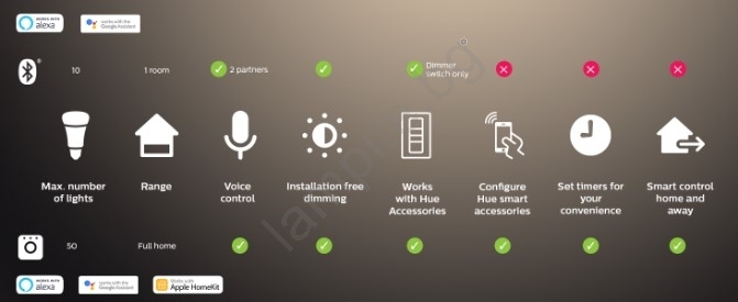 • Ще получите достъп до множество функции като таймер, светлинни сцени за всяка стая, имейл известия и съобщения, будилник и много други благодарение на многото мобилни приложения за системата Hue.