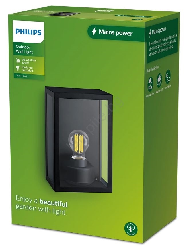 Philips - Екстериорен аплик ALZOR 1xE27/25W/230V IP44 се отличава с приятен и функционален дизайн.  Подходяща е крушка с цокъл E27. Тук можете да закупите и други крушки на изгодни цени. Ще имате интересно допълнение към дома си.
