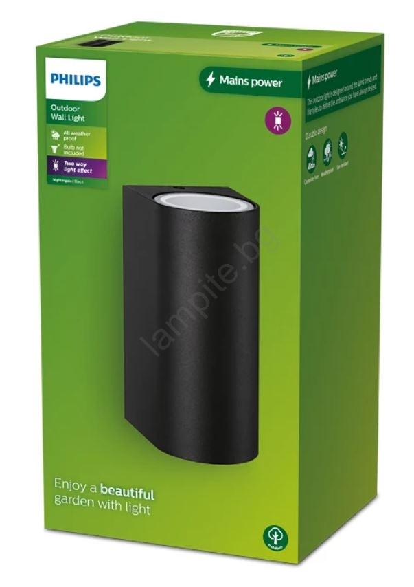 Philips - Екстериорен аплик NIGHTINGALE 2xGU10/35W/230V IP44 се отличава с приятен и функционален дизайн.  Подходяща е крушка с цокъл GU10. Тук можете да закупите и други крушки на изгодни цени. Ще имате интересно допълнение към дома си.