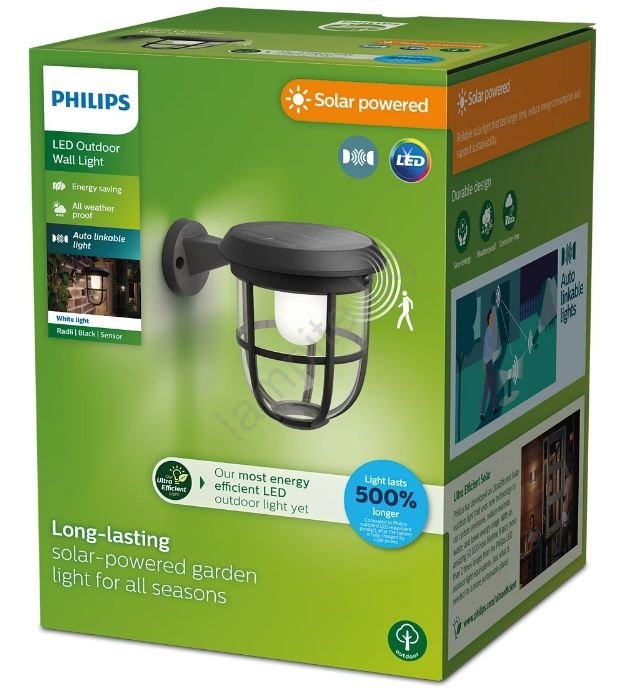Philips - LED соларен стенен осветител с датчик за движение и здрач RADII LED/1,3W/3,7V 2000 mAh 3000K IP44