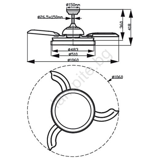 • LED таванно осветително тяло с вентилатор и дистанционно управление.
