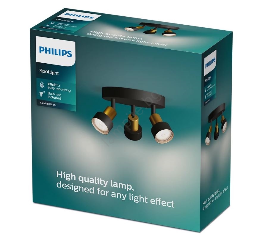 Philips - Спот CONDUIT 3xGU10/5W/230V черен/месинг