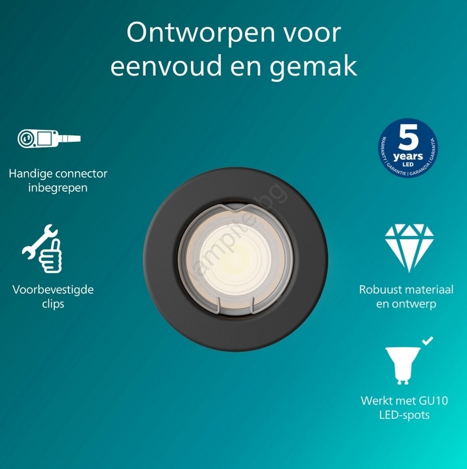 Philips - Вградено осветително тяло PERIDOT 1xGU10/7W/230V черно се отличава с приятен и функционален дизайн.  Подходяща е крушка с цокъл GU10. Тук можете да закупите и други крушки на изгодни цени. Ще имате интересно допълнение към дома си.