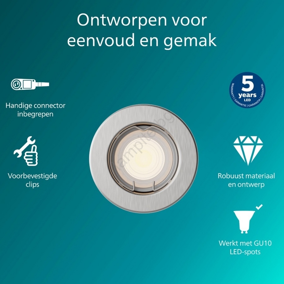 Philips - Вградено осветително тяло PERIDOT 1xGU10/7W/230V сребристо се отличава с приятен и функционален дизайн.  Подходяща е крушка с цокъл GU10. Тук можете да закупите и други крушки на изгодни цени. Ще имате интересно допълнение към дома си.