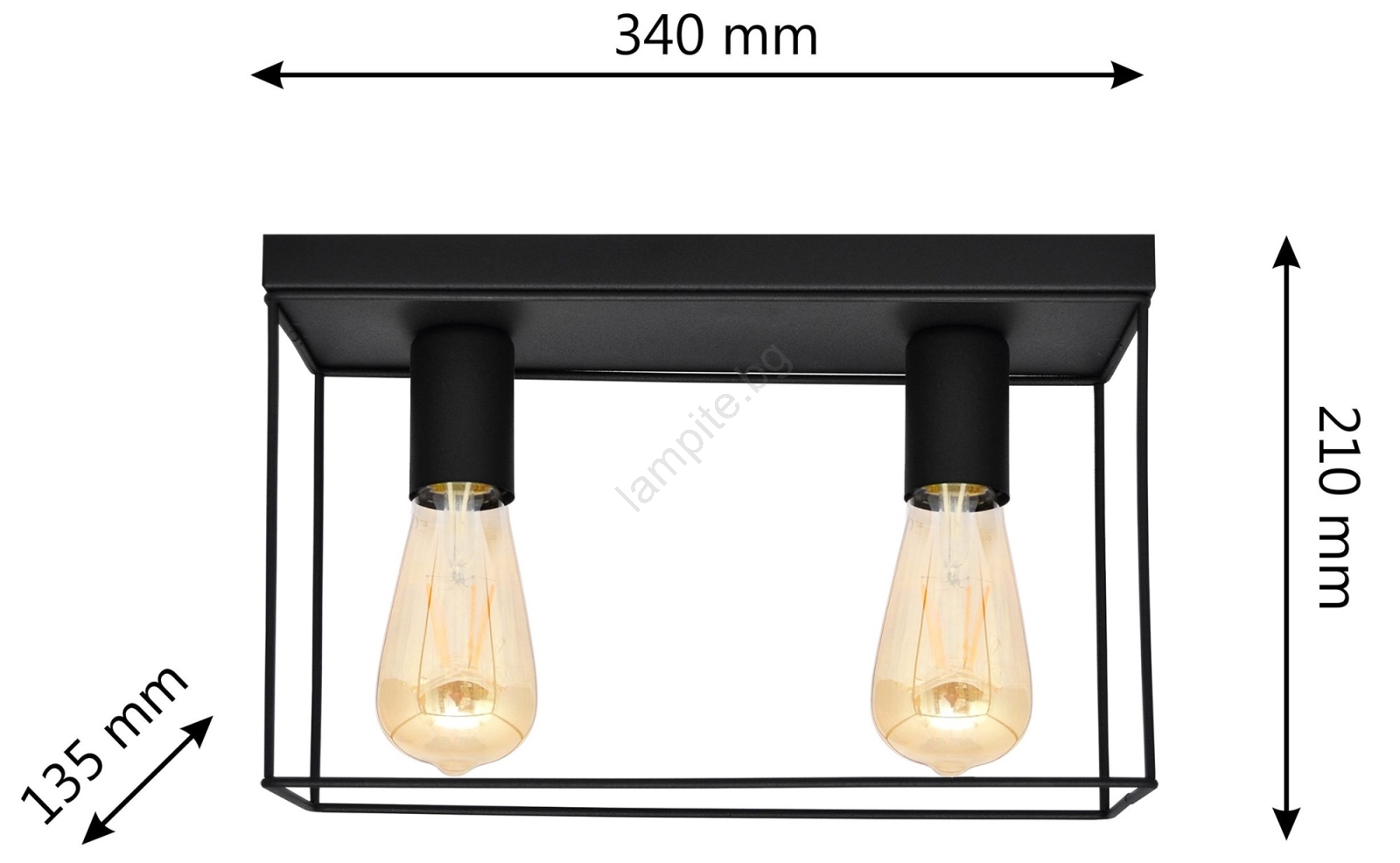 • Плафон FINN 2xE27/15W/230V черен
