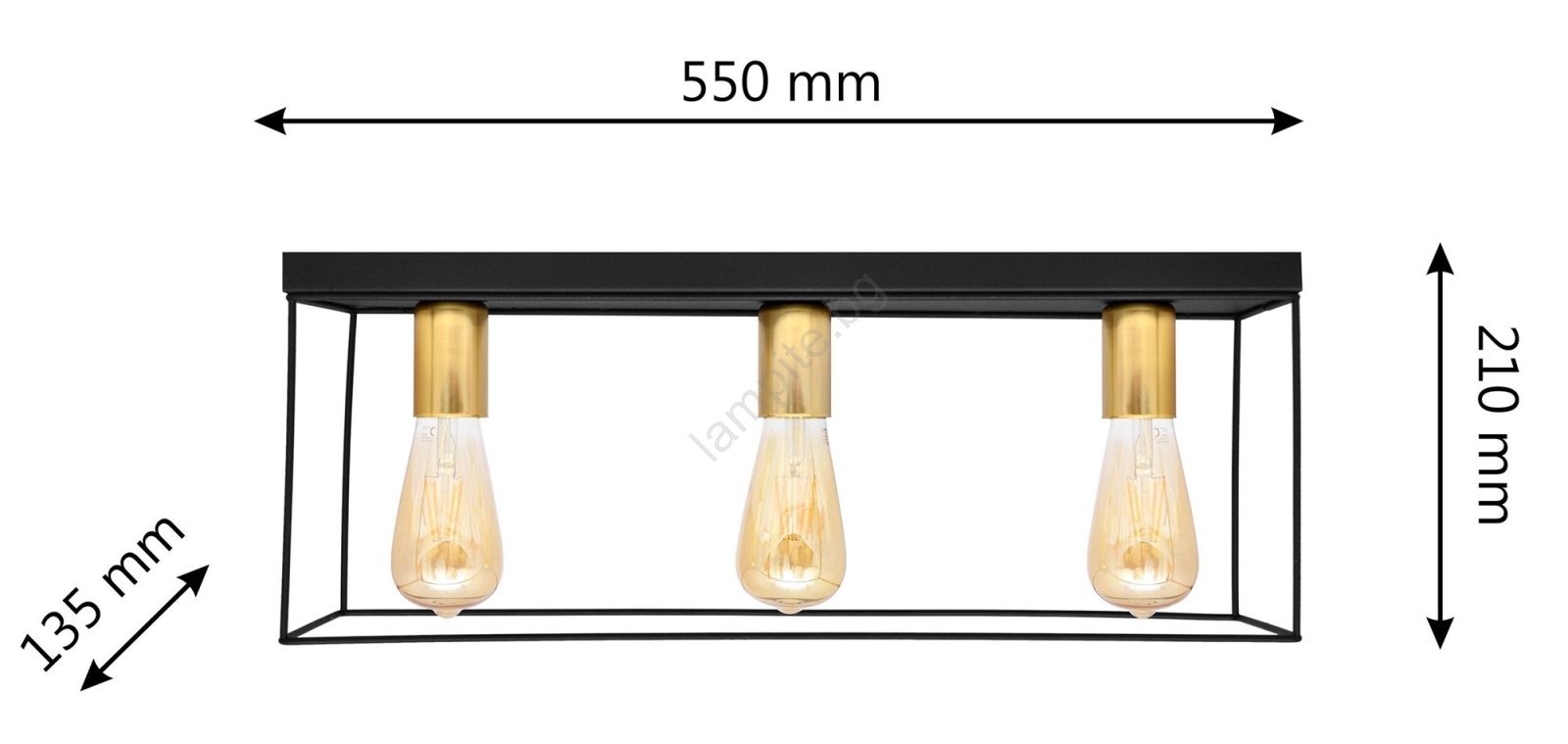 • Плафон FINN 3xE27/15W/230V черен/златист