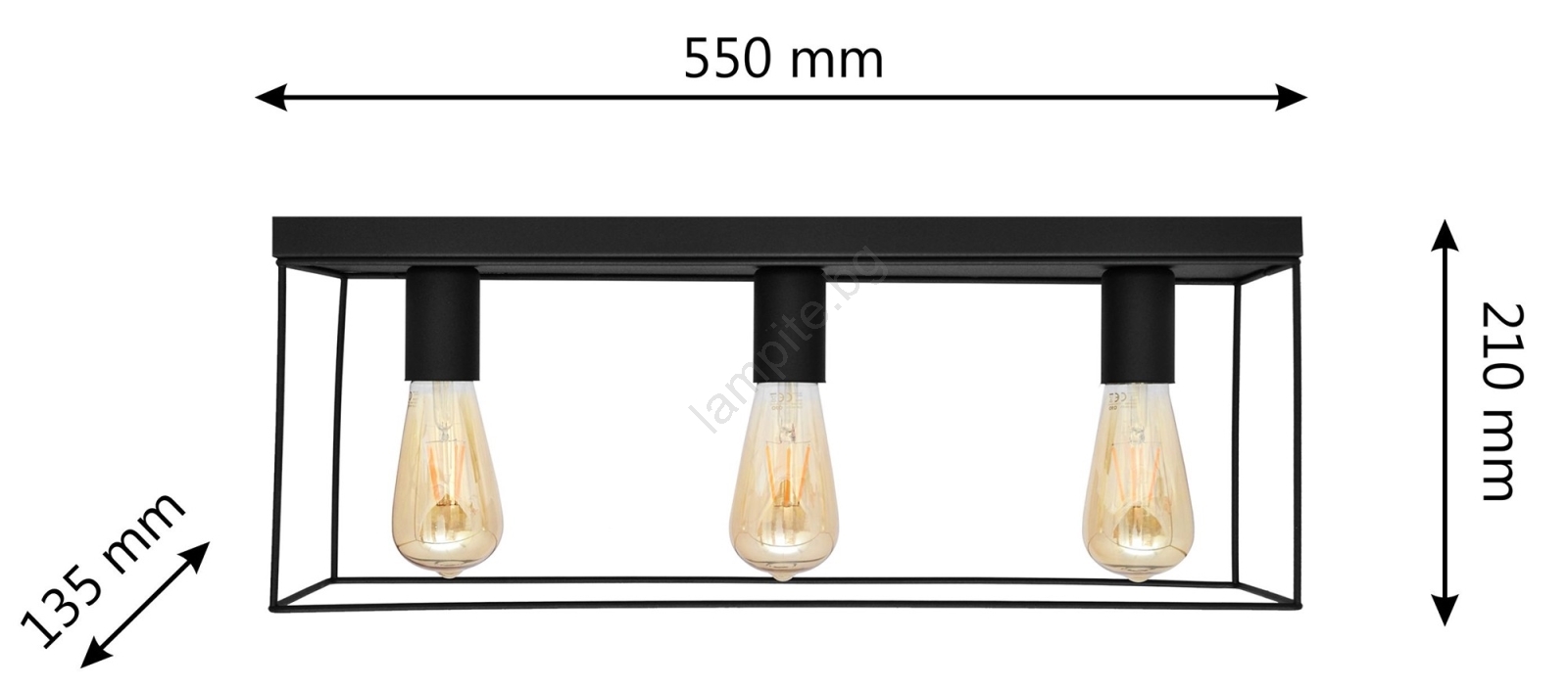 • Плафон FINN 3xE27/15W/230V черен/лъскав хром