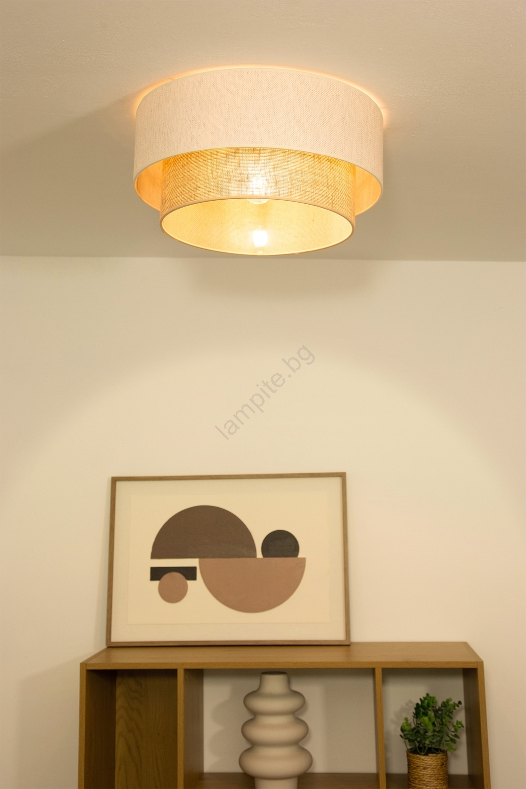• Таванно осветително тяло NATIA 1xE27/60W/230V, Ø 45 cm, бяло/кафяво