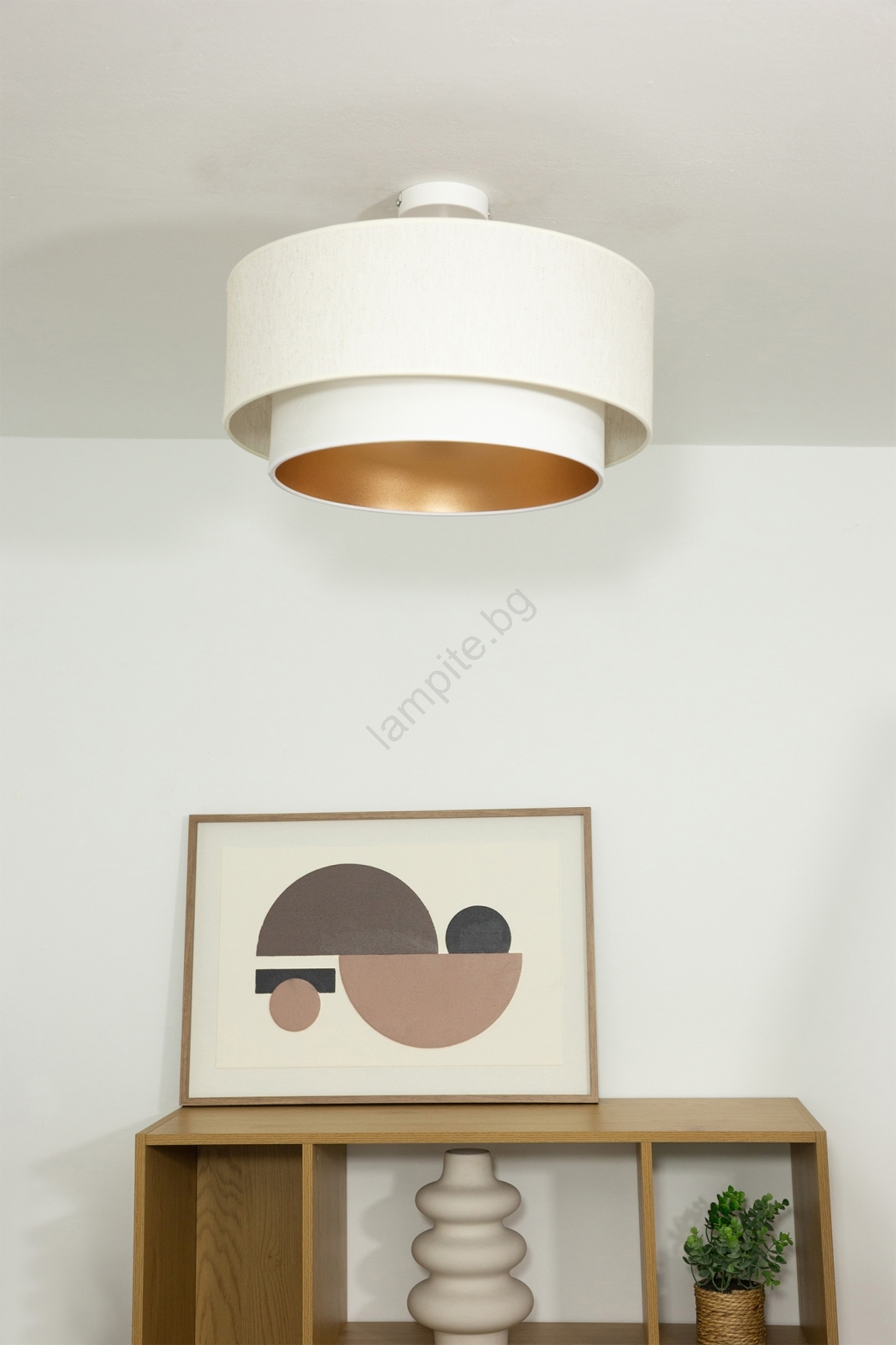 • Плътно монтиран полилей NATIA 1xE27/60W/230V, диаметър 45 см, бял/кафяв
