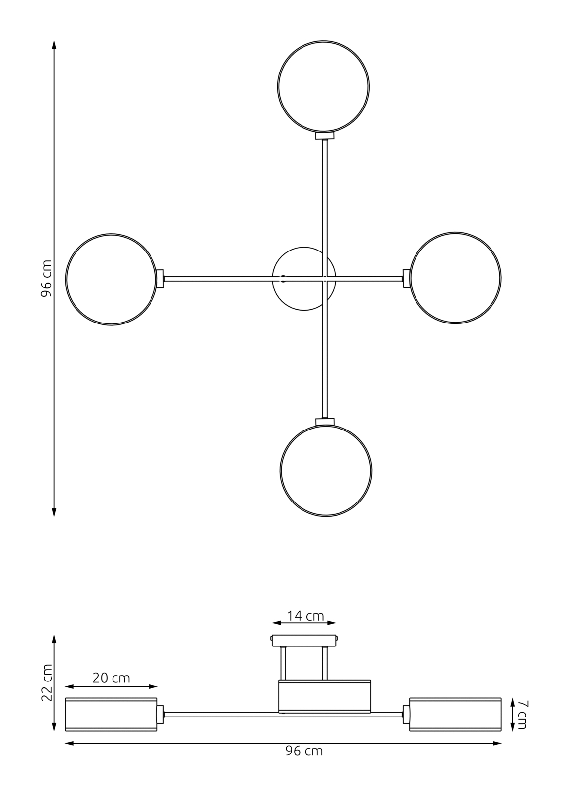 • Плафонен полилей MAGA 4xE14/10W/230V, черен