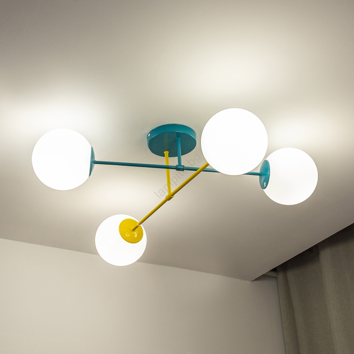 • Плафонен полилей MOON 4xE27/15W/230V тюркоаз/жълт
