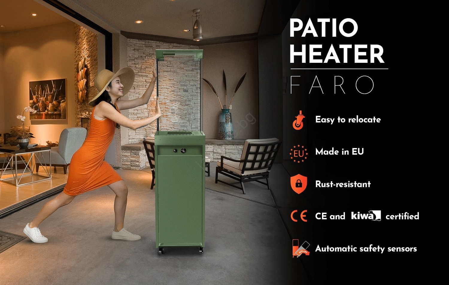 • Включеното покривало предпазва газовия отоплител през всички сезони.